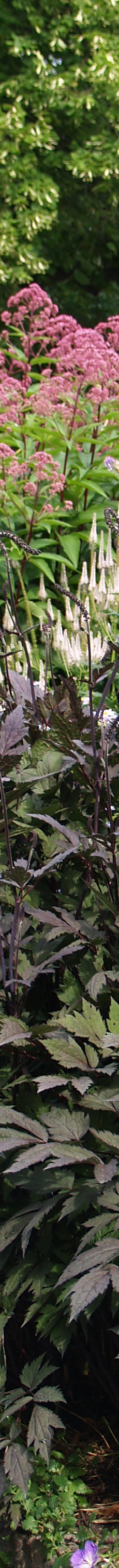 stauder og græsser sig ind i hinanden mellem træer og cylindriske rum dannet af høje