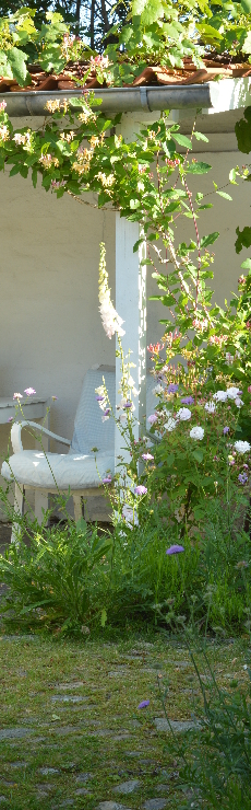 Den nedlagte gård ligger på en sandet og forblæst bak-ketop vest for Brønderslev og 12 km fra Vesterhavet. Haveplanen bygger på kontrasten mellem det vilde' og 'det styrede'. Nær huset er mest styret, her ligger den romantiske gårdhave bag den gamle lades mure og her er de historiske roser samt formklippede fyrretræer, buksbom og bøgehække. For at underbygge stedet sjæl har de selskab af enkle stauder og vilde blomster. Længere ude bliver haven mere 'vild' og plænen glider over i klippede græsstier mellem krat, bregner og vilde græsser. De klippede stier føres videre gennem markerne til mose og skov. Et sikkert blik for detaljen, genbrug og en blid men, bestemt hånd styrer. Også i urtehaven, hvor råvildt forménes adgang! (Tryk på prikker mellem pile for at se mere).